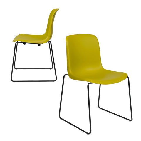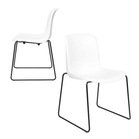 The Murray side chairs are a sleek, stackable option that features a poly-cotton upholstered fabric, with the perfect amount of thickness and rigidity.