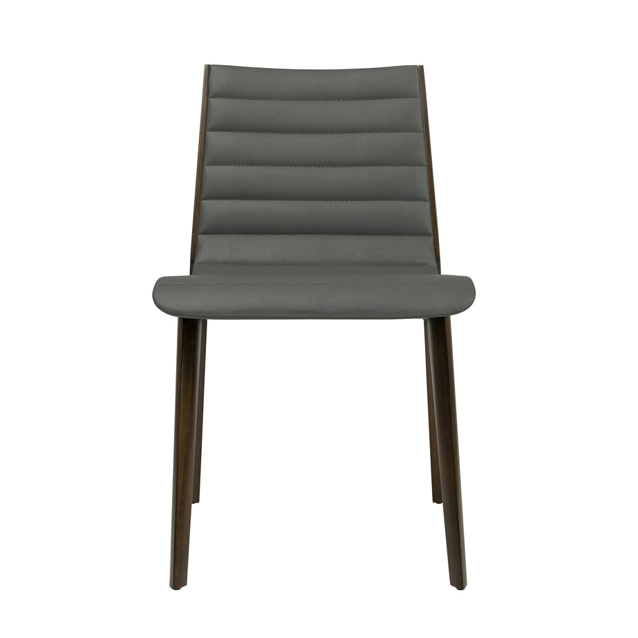 The Madison side chair from Laura Davidson is a beautiful, multi-purpose seating option which combines a walnut-stained wood frame with a ribbed leatherette seating surface. This modern look is both comfortable and commercial-grade, suitable for a variety of uses and environments – from homes and offices to restaurants and hotels.