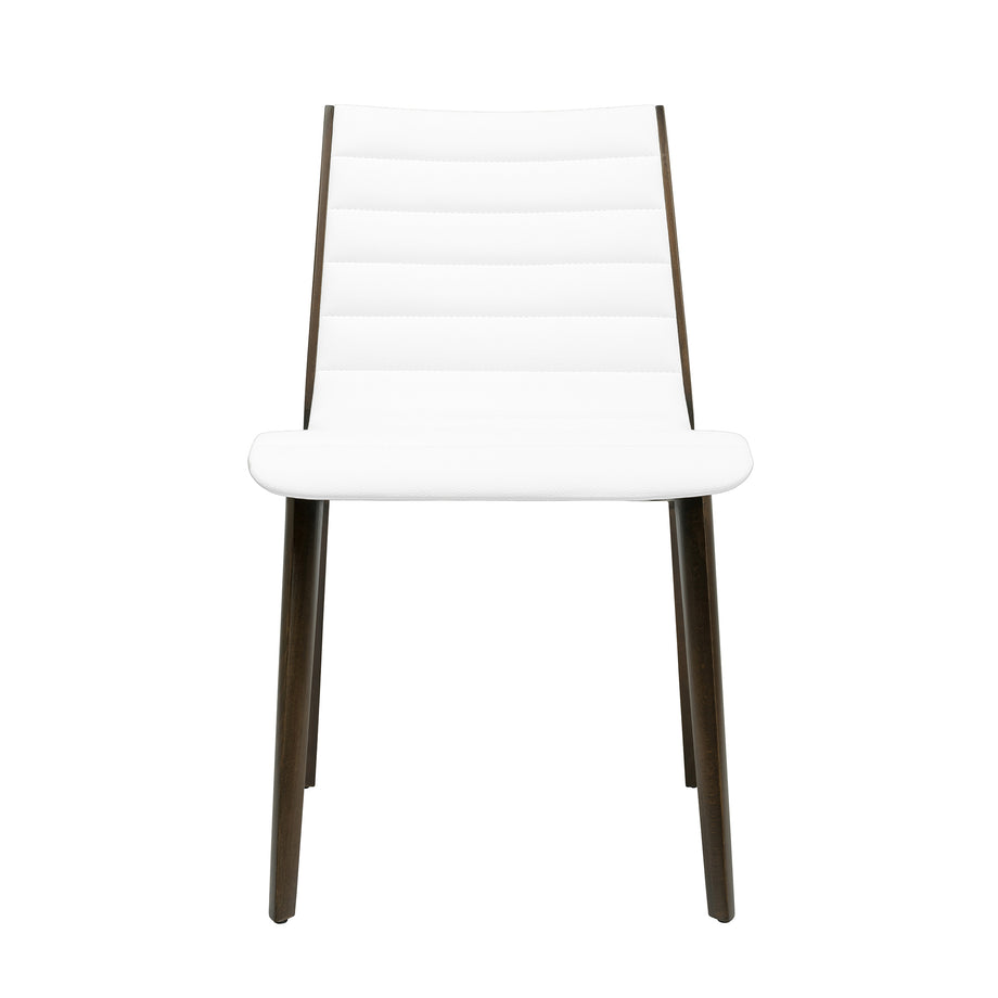The Madison side chair from Laura Davidson is a beautiful, multi-purpose seating option which combines a walnut-stained wood frame with a ribbed leatherette seating surface. This modern look is both comfortable and commercial-grade, suitable for a variety of uses and environments – from homes and offices to restaurants and hotels.