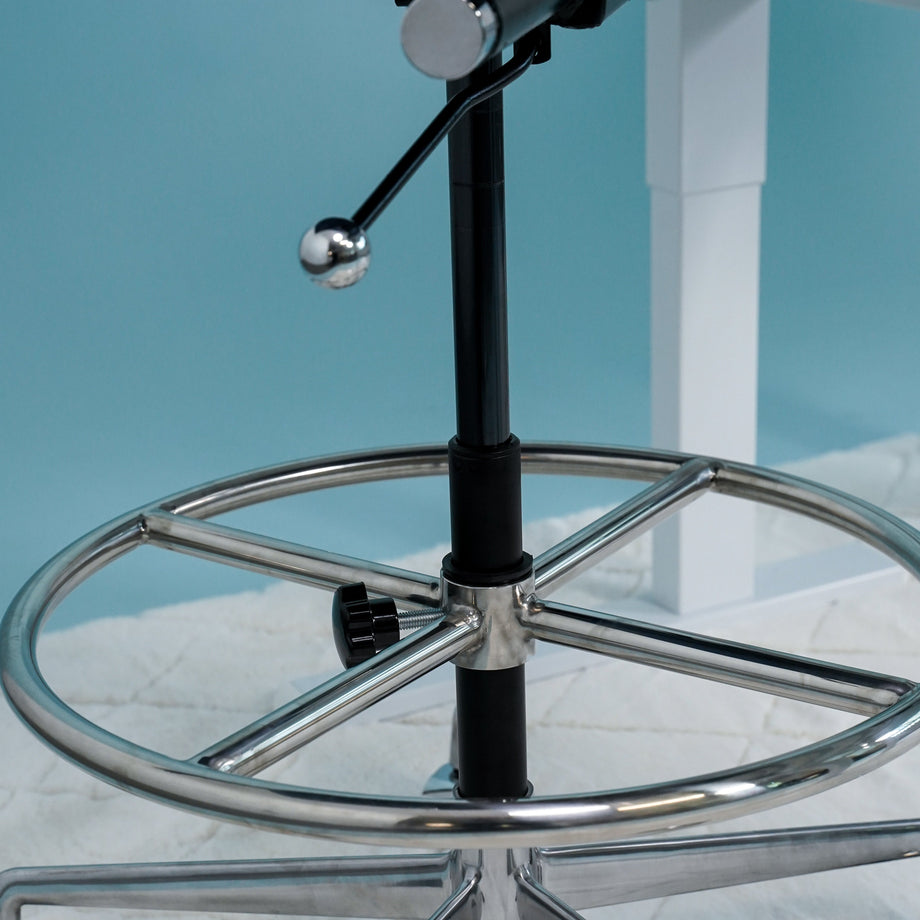 The aluminum base not only looks great, but it’s also the strongest base on the market — supporting over 400 lbs. The base, foot ring, and stationary glides also provide a secure and reliable foundation for drafting height requirements.