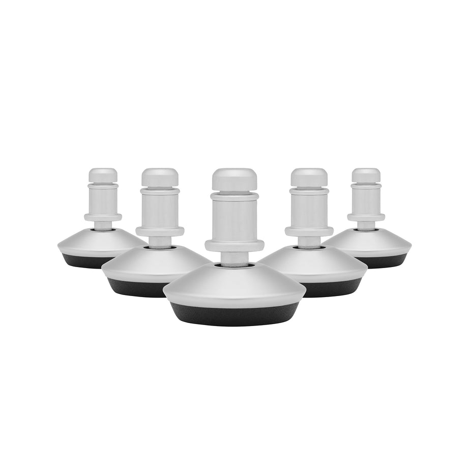 Sick of rolling? Try our set of 5 stationary glides with easy push-in installation. Designed for use on our SOHO chairs, these glides provide a fixed-base alternative to rolling casters. The construction uses a chrome metal hood with stationary plastic feet.